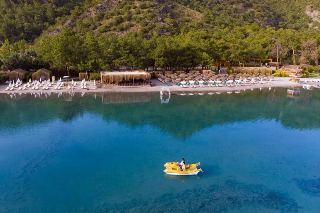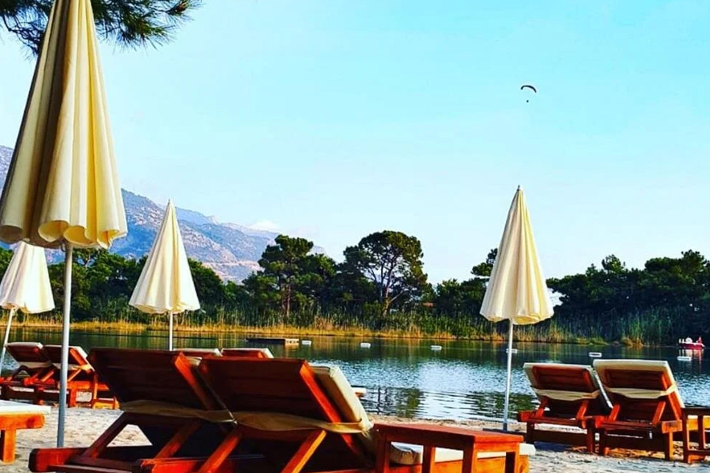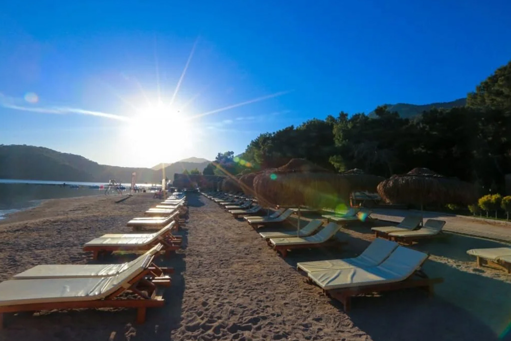 Ölüdeniz’in en güzel noktasında konumlandırılmış tesisimiz, kapısından girdiğinizde mavi ve yeşil atmosferiyle sizi etkisi altına alıyor. Dokuz dönüm arazi üzerine kurulu tesis, 12.500 metrekare yeşil alanıyla diğer plajlardan farklı olarak eğlencenin yanında dinlenceyi de sunuyor.